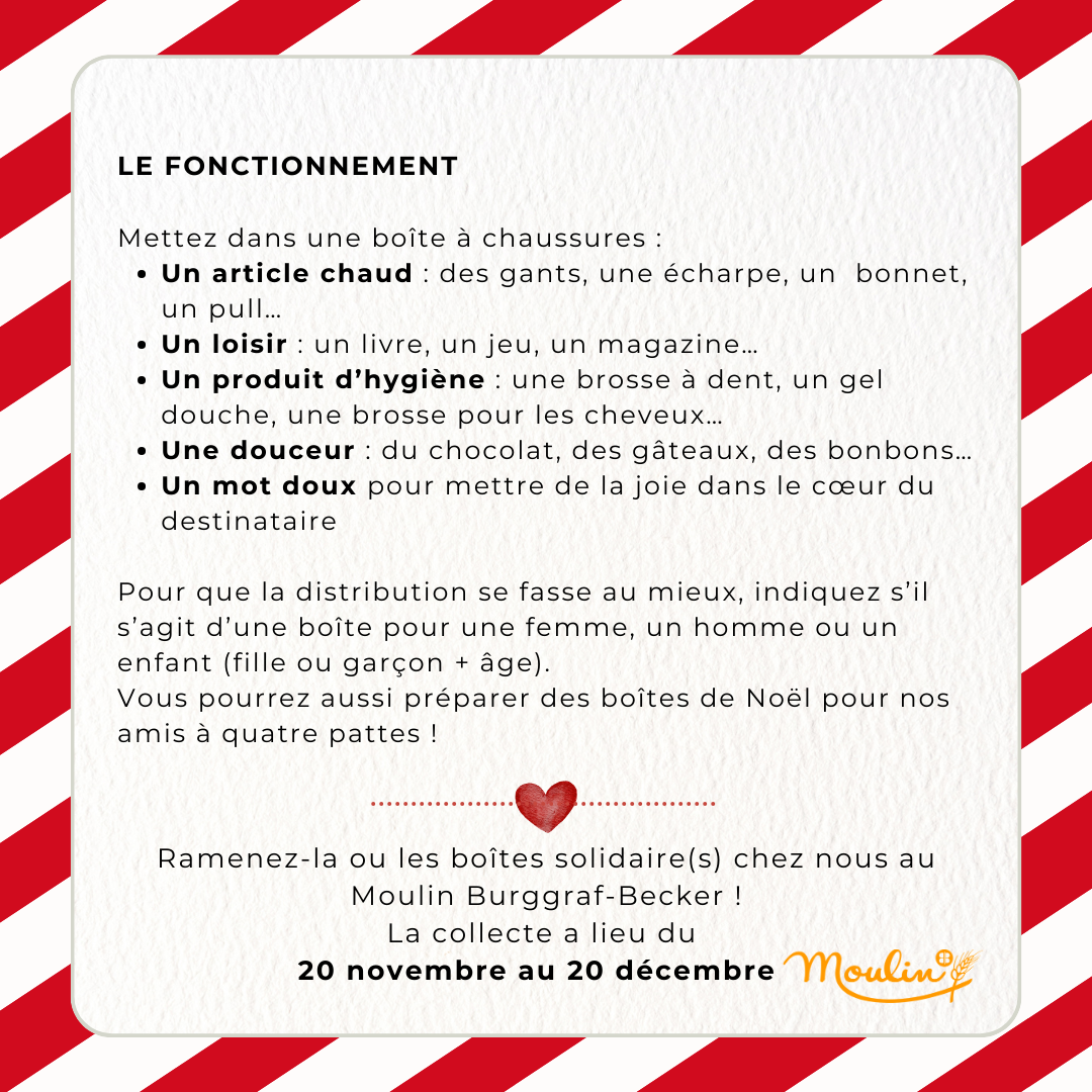 Porté par l’Association Communauté Solidaire d’Alsace depuis quelques années, il s’agit de mettre dans une boîte à chaussures :